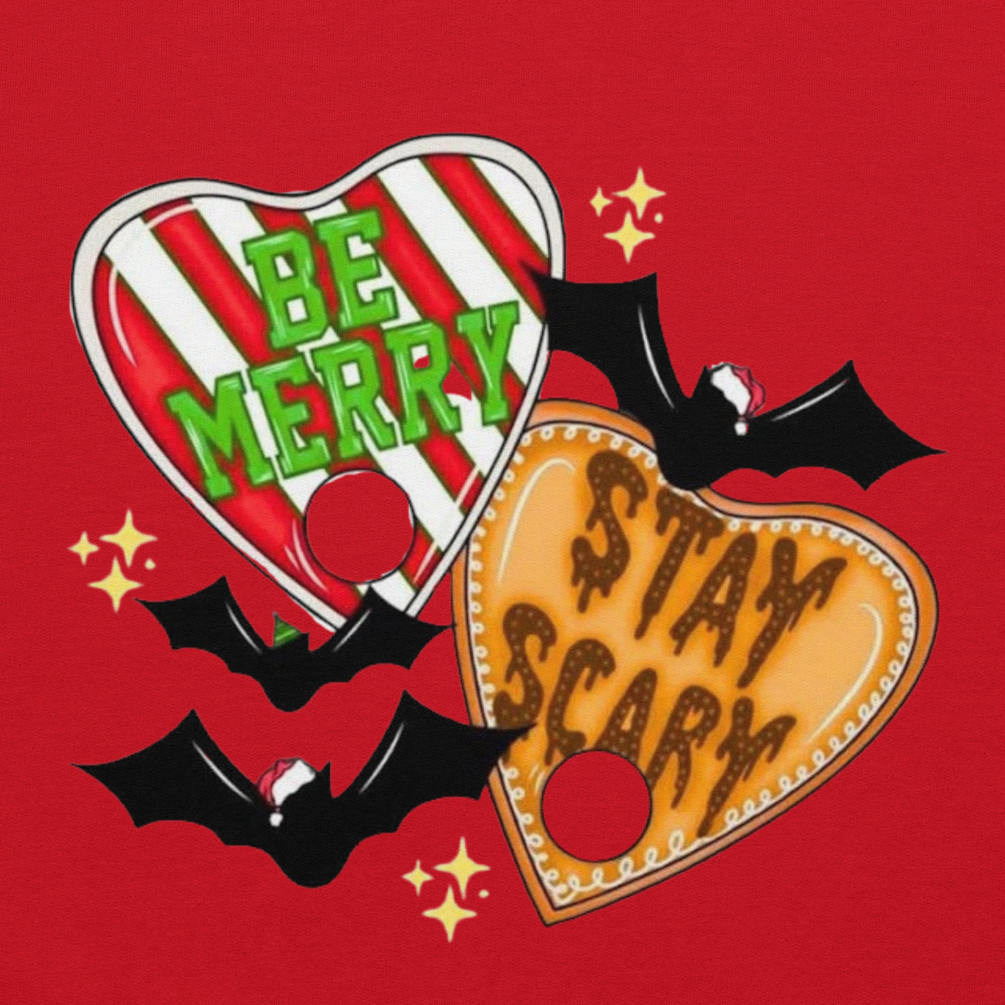 be merry stay scary hoodie, spooky christmas hoodie, gothic holiday hoodie, creepy cute christmas hoodie, bat christmas hoodie, ouija planchette christmas hoodie, alternative christmas sweatshirt, spooky holiday apparel