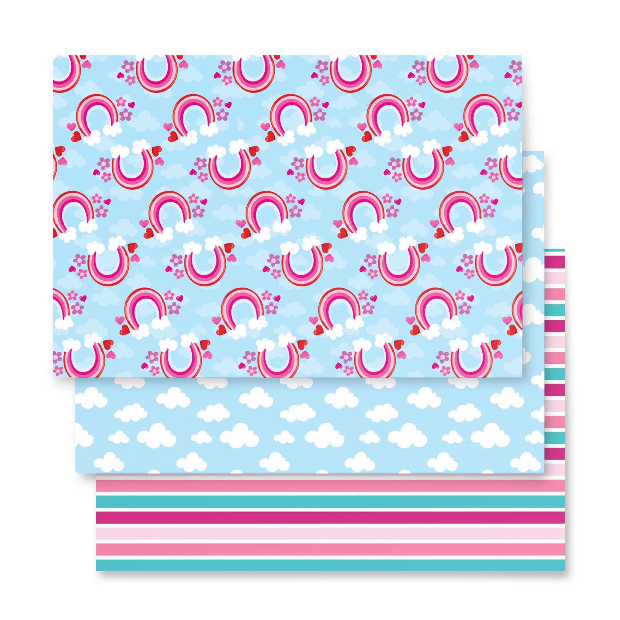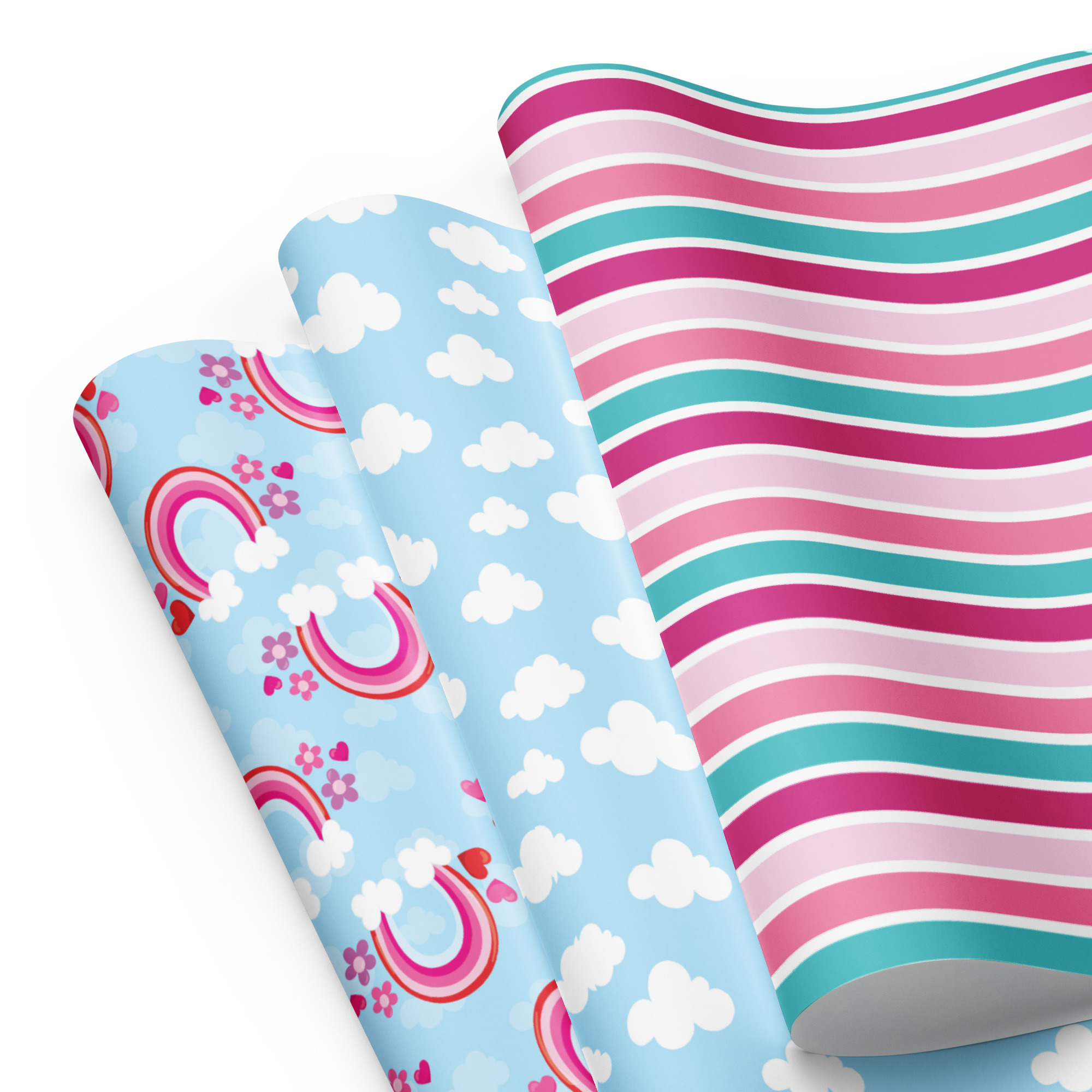 Blue Cloud & Rainbow Wrapping Paper — Set of 3 Matte Sheets