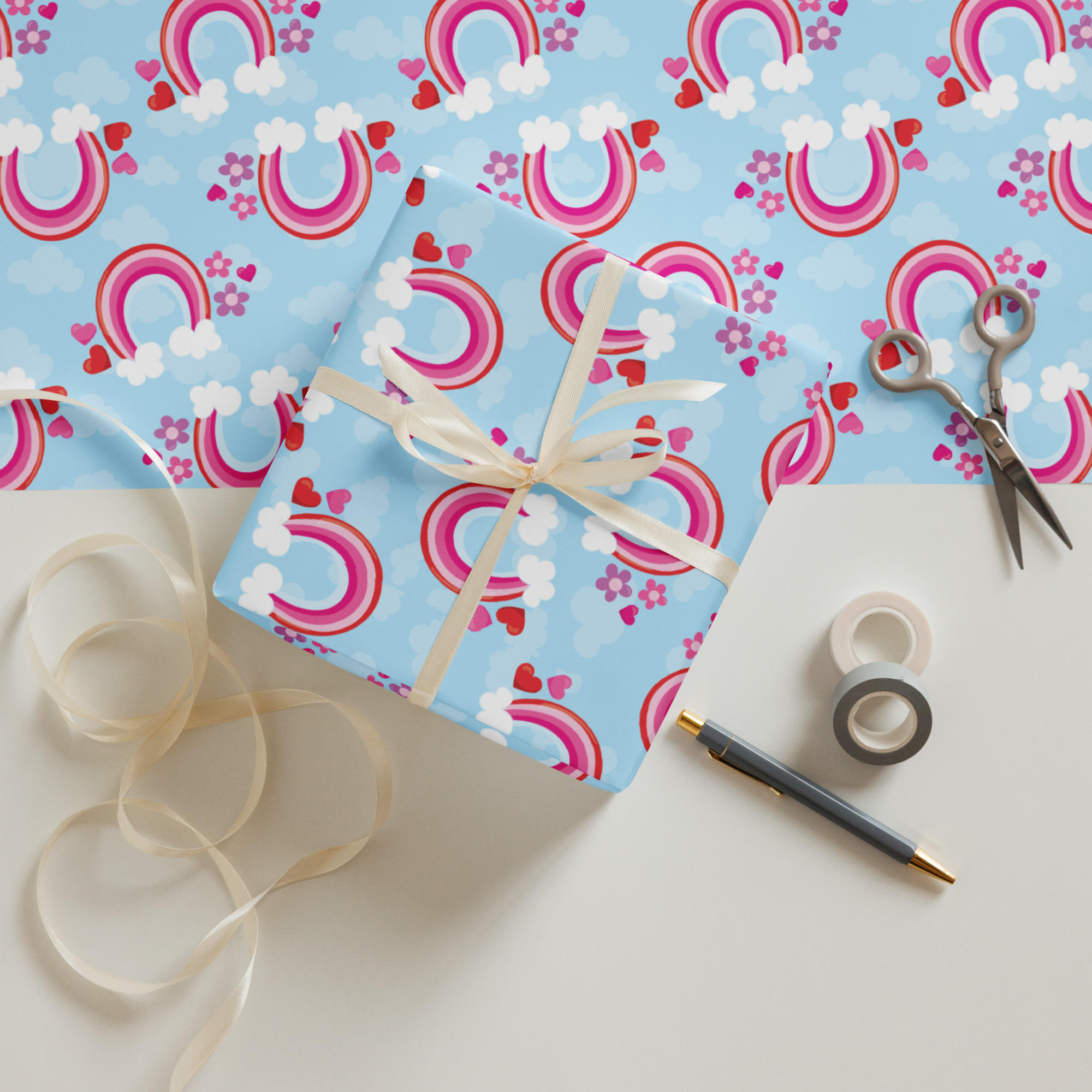 Bring brightness and joy to every gift with our Blue Cloud & Rainbow wrapping paper set. These three high-quality, matte-finished sheets feature a dreamy sky-inspired design with soft blue clouds and cheerful rainbows — the perfect mix of calm and happiness. Ideal for birthdays, baby showers, or any uplifting occasion, this wrap adds a touch of sunshine to every celebration.