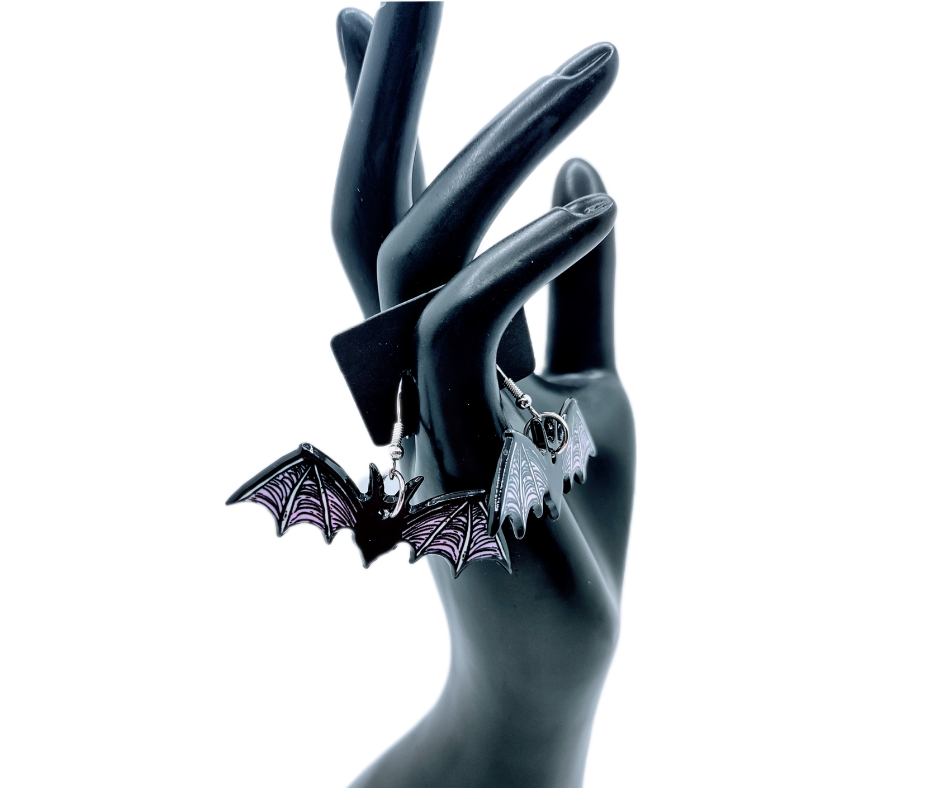 - Design: Dark bat dangle earrings with a gentle drop design.