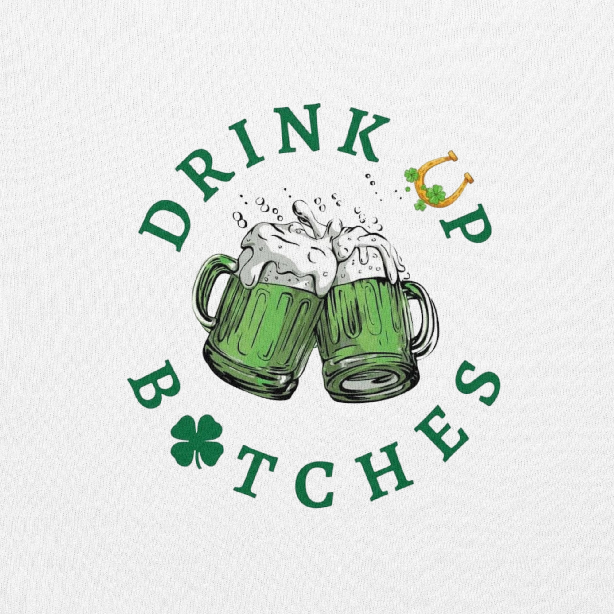 - Festive Design: Show off your St. Patrick's Day spirit with the fun and eye-catching "Drink Up" graphic.