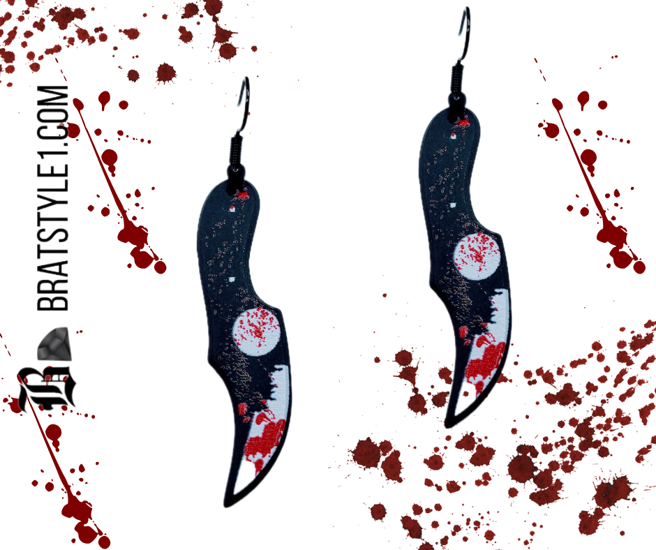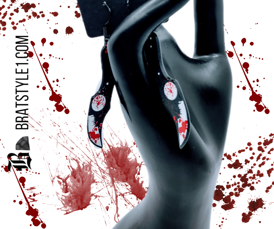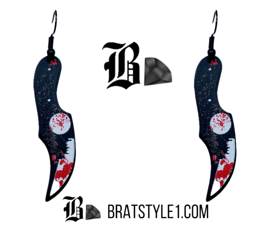 Make a bold statement with the Crimson Edge Earrings, the first in a unique and striking collection designed to leave a lasting impression. Inspired by the captivating allure of curved blade bloody knives, these earrings translate edgy appeal into a stunning fashion accessory.