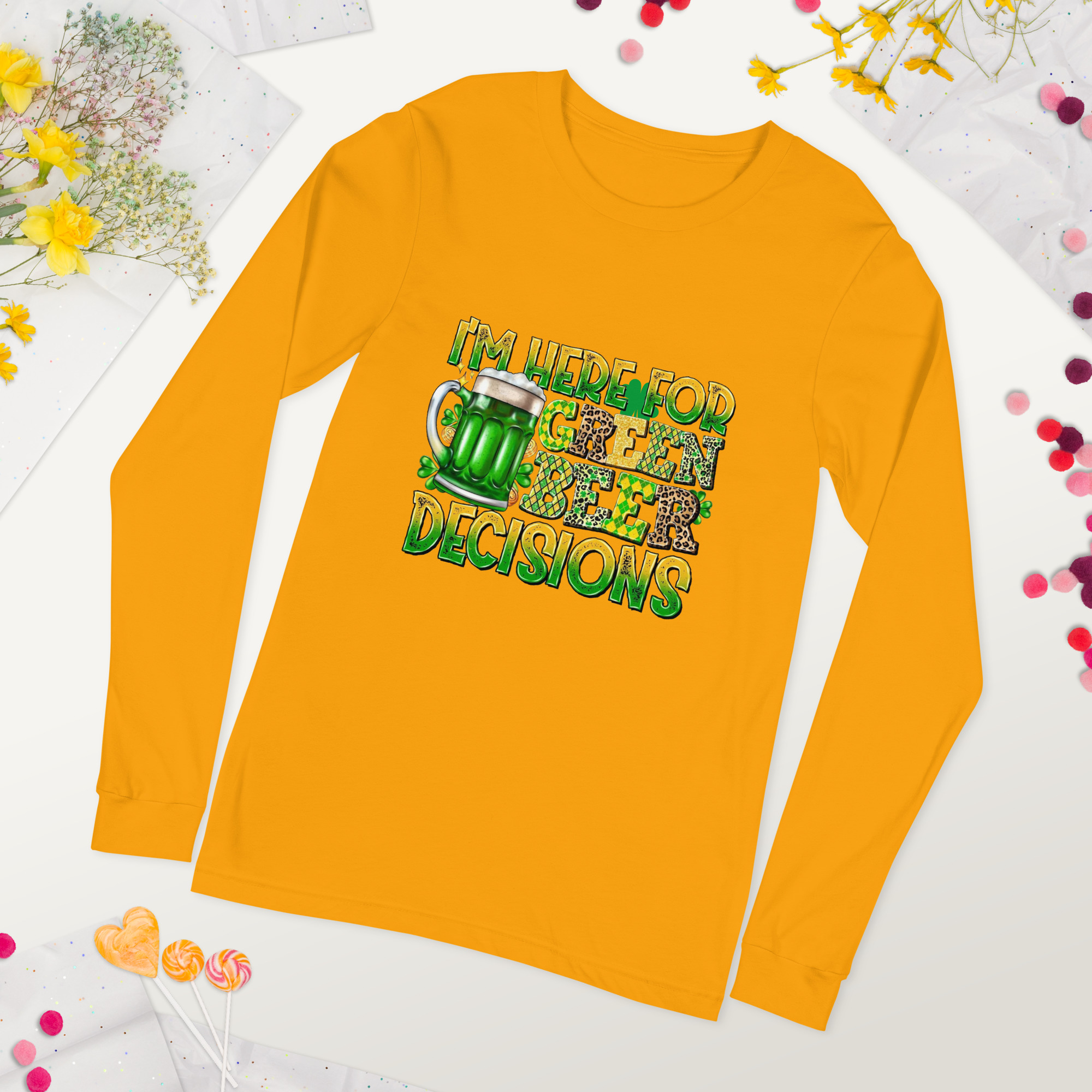 I'm Here For Green Beer Decisions Unisex Long Sleeve Tee