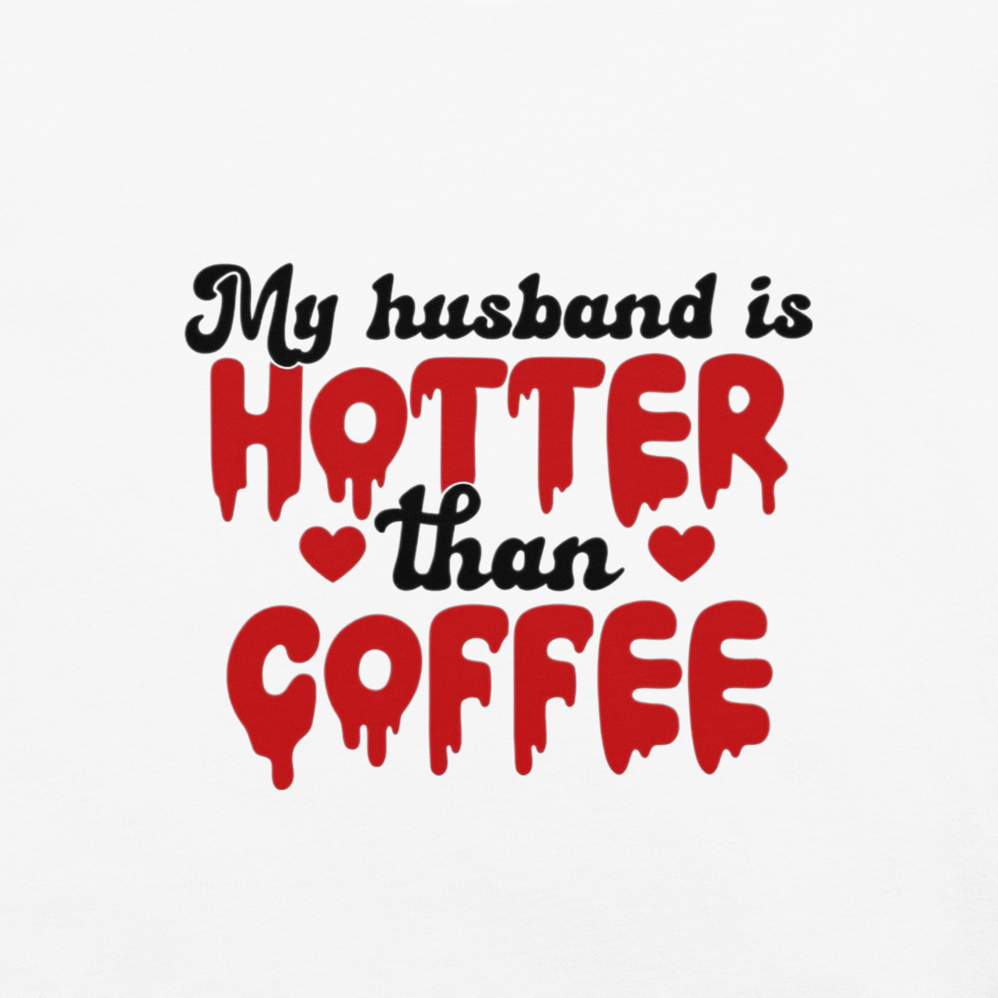 - Design: "My Husband is Hotter Than Coffee" in drip-red style