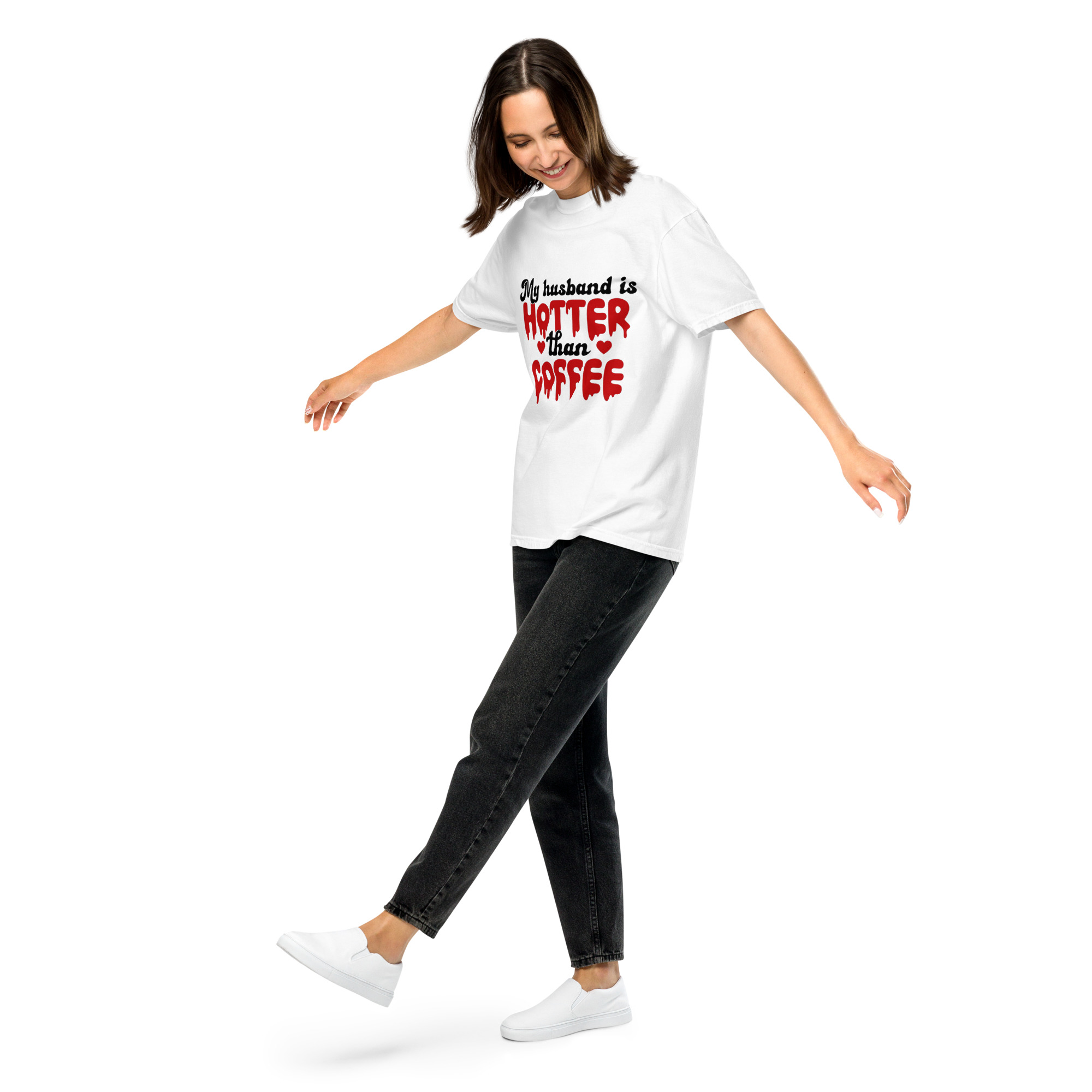 - Stylish Statement: The eye-catching "My Husband is Hotter Than Coffee" design in a drip-red style adds a playful and bold element to your look. It's a fun conversation starter and a perfect way to show your appreciation for your significant other.