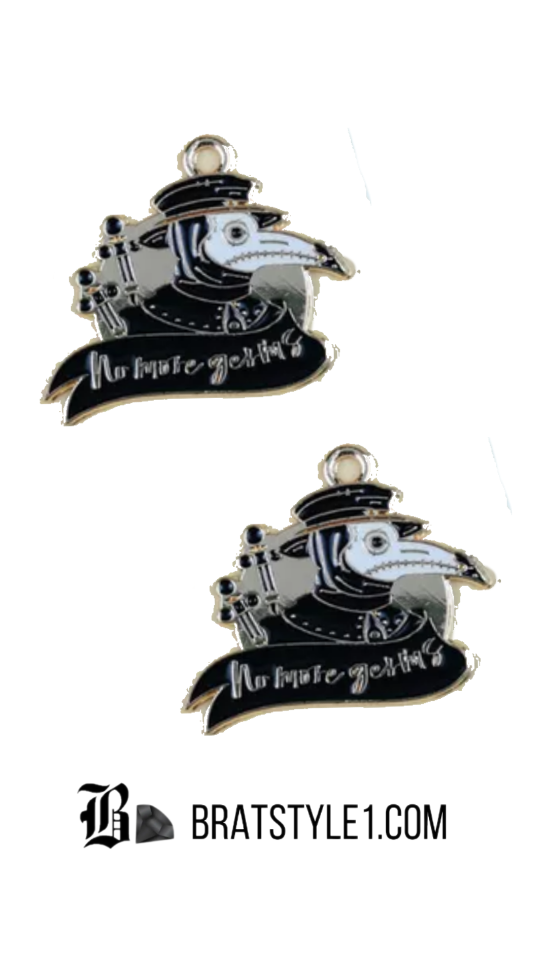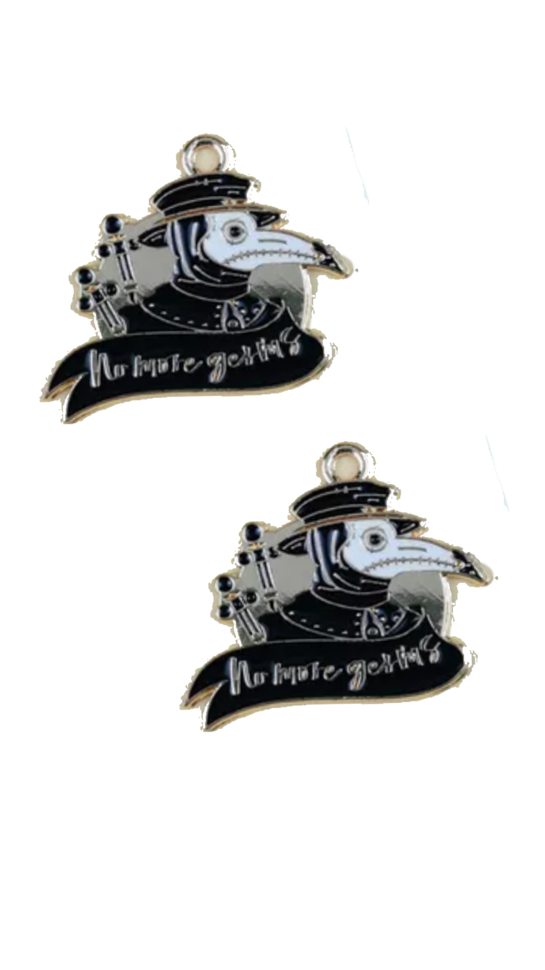 Express your unique style with these captivating No Germs Black Plague dangle earrings. This unisex set offers a touch of gothic flair, making it a perfect accessory for any outfit. The distinctive design evokes a sense of history and mystery, referencing a time of witches and plagues, making them a true conversation starter.