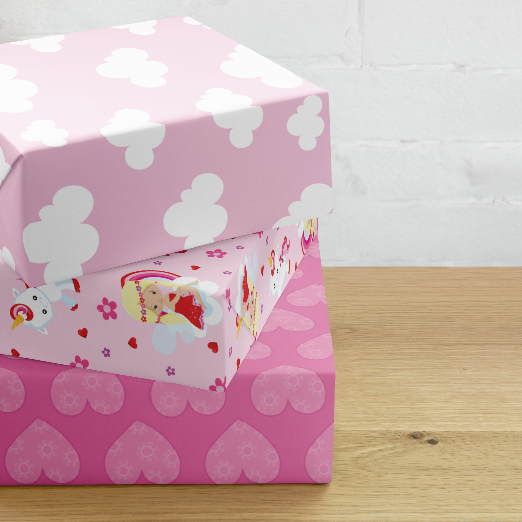 Pink Cloud & Rainbow Wrapping Paper — Set of 3 Matte Sheets