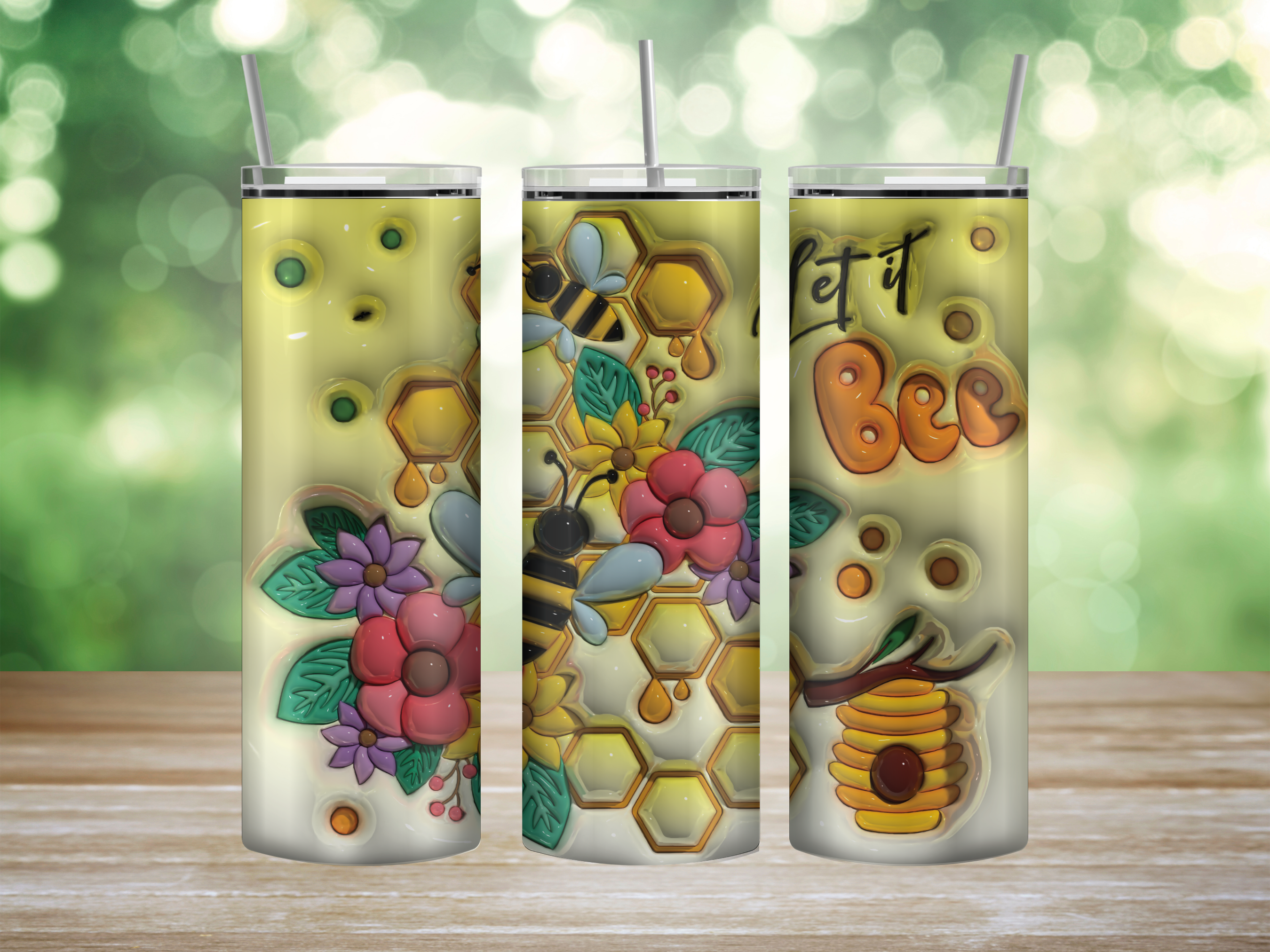 Puffy Paint Style 3D "Let it Bee" Tumbler - 20oz Skinny Tumbler
