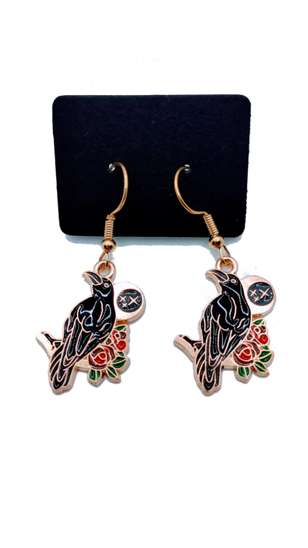 Crafted with high-quality materials, these earrings feature a durable stainless-steel hook for comfortable and secure wear. Their charming design makes them a delightful addition to any jewelry box and an ideal gift for a loved one or a well-deserved treat for yourself. Make a statement and let your style soar with these eye-catching Rose Crow Gold earrings.