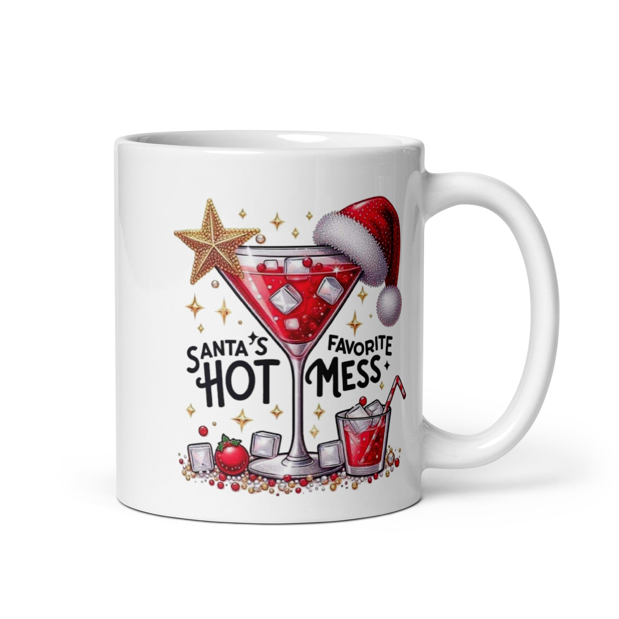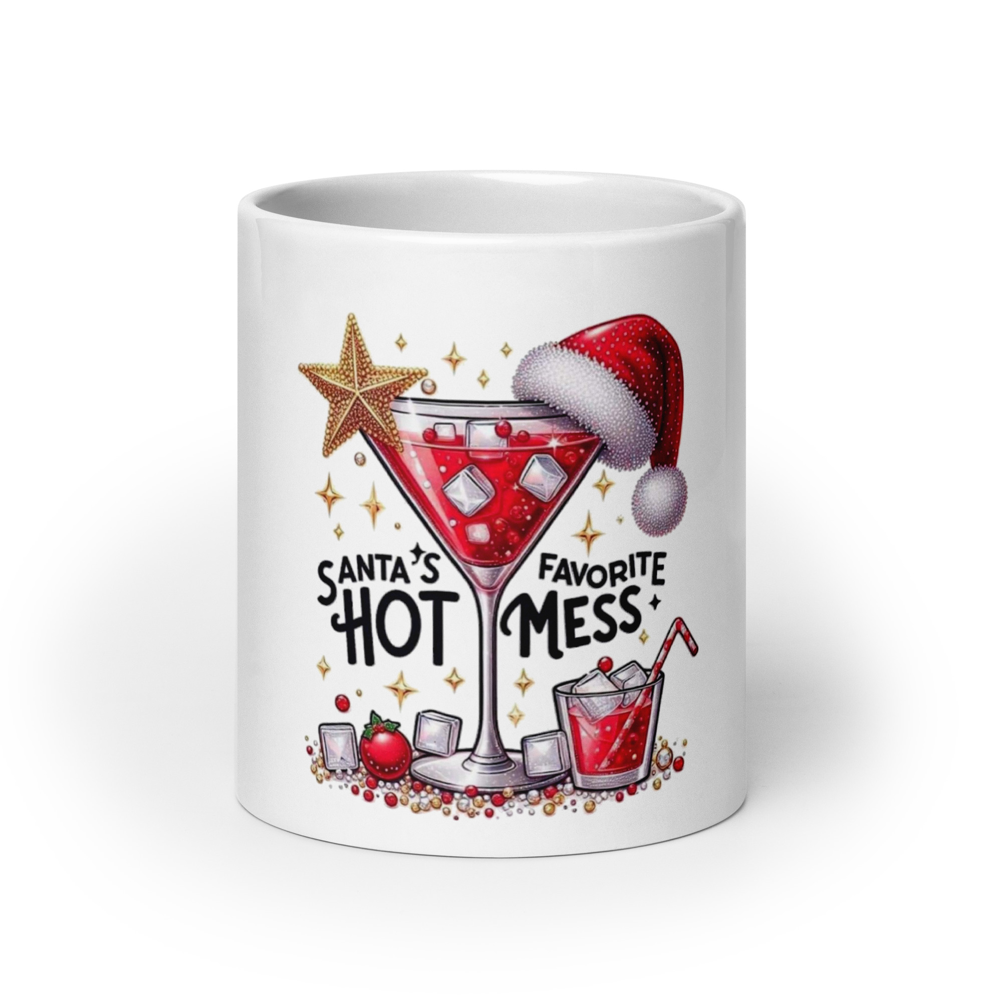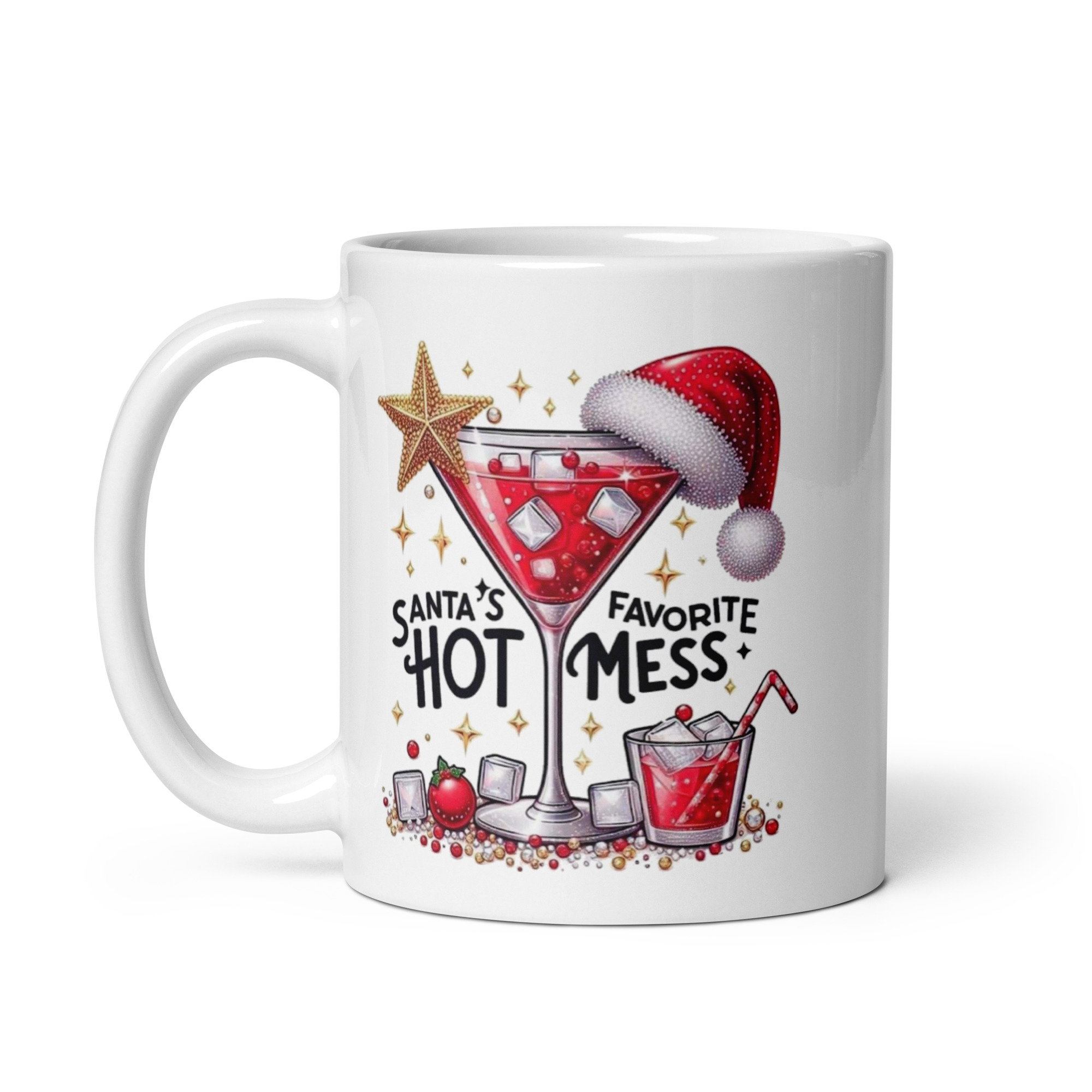 White ceramic glossy mug with “Santa’s Favorite Hot Mess” graphic