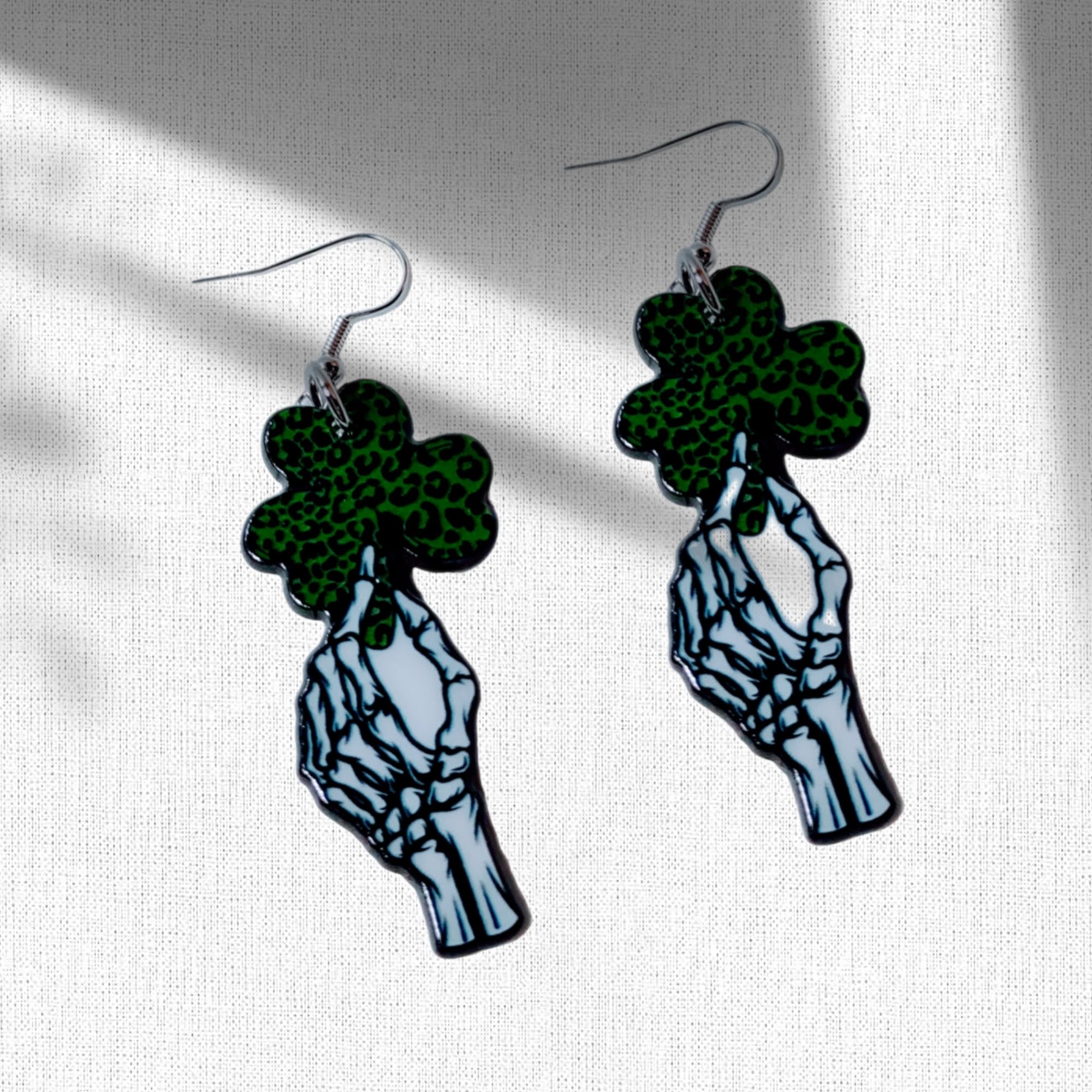 Introducing our exclusive collection of earrings, where spooky skeletons meet lucky shamrocks, just in time for St. Patrick's Day! These unique and eye-catching earrings are the perfect accessory to add a touch of whimsy and charm to your festive ensemble. The lightweight design ensures comfort during extended wear, making them ideal for parties, parades, or simply adding a touch of festive flair to your everyday outfits.