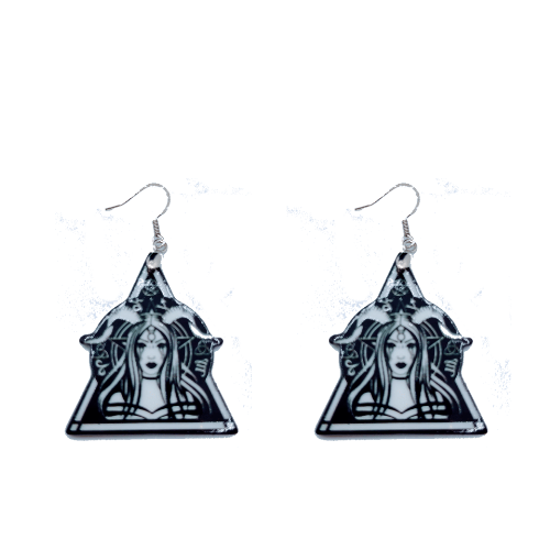 Channel your inner magic with The Caster earrings. These striking dangle earrings feature a horned goddess design, making a bold statement for any occasion. Whether you're attending a special gathering or simply expressing your unique style, these earrings are sure to turn heads.