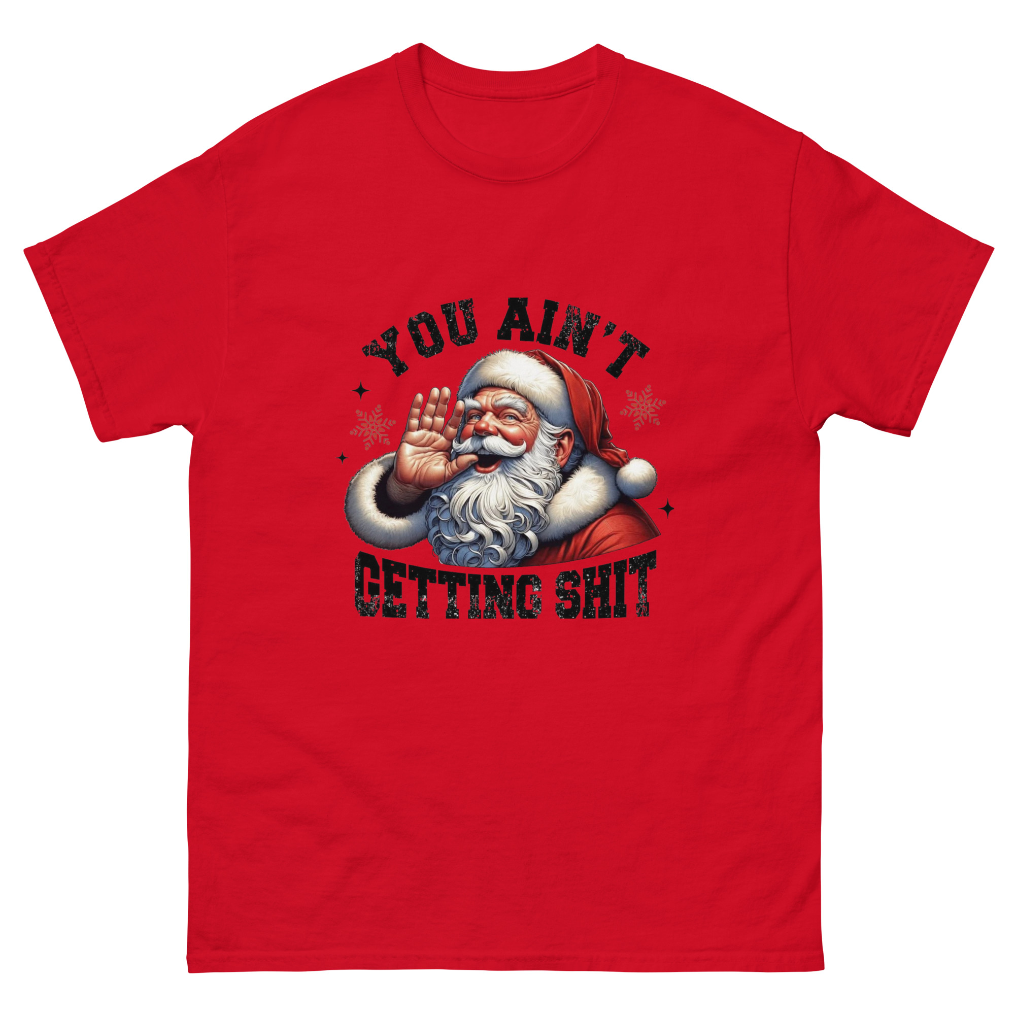 Bring some savage holiday humor to your wardrobe with this “You Ain’t Getting Shit” unisex t-shirt featuring a classic Santa graphic and a bold, unapologetic phrase. Perfect for adults who love edgy Christmas jokes, gag gifts, holiday parties, or anyone embracing naughty-list energy. Made with a soft cotton blend and a relaxed unisex fit, this shirt combines comfort with festive attitude, keeping you cozy while delivering laughs all season long.